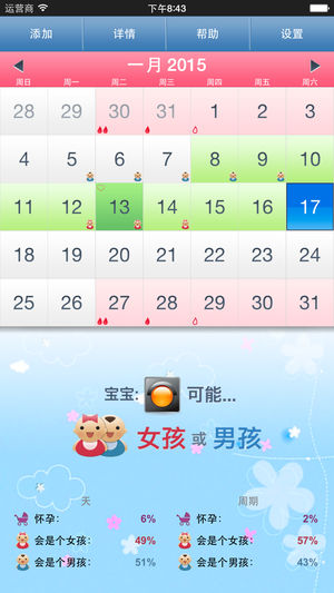 "月经期助手" 为男性特别订制。 该应用程序是真实科学成功的结晶!它可以帮助您确定每月的受孕期,您可以此积极怀孕或避免怀孕。