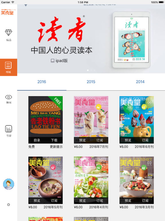 《美食堂》是一本以健康美食、新鲜生活为导向的时尚美食杂志。她为读者提供各种潮流美食资讯、健康美食食谱和实用餐饮信息,传递健康、平衡、时尚的生活理念。《美食堂》为时髦太太贴身打造的“第一本厨房杂志”,注重“零起点”的概念,细化每一个操作步骤、解释最基本的烹饪名词,手把手带读者进入厨房世界。《美食堂》主要内容由“美味菜谱”和“品质生活”两大部分组成。美味菜谱,居家知己;品质生活,健康伴侣。《美食堂》陪伴你在厨房里的每时每刻,让厨房生活从此丰满有趣起来。 --------------------------------- 1:订阅价格:用户可以选择订阅3个月(只需要18元),订阅半年(只需要30元)或者订阅全年(只需要60元)。 2:关于续订:苹果App Store官方订阅功能为自动续费订阅,用户需要手动在iTunes帐户设置管理中关闭自动续订功能,如果订阅期结束前一天内未关闭自动续订功能,订阅周期后自动延续- 。 3:关于订阅时间段:苹果App Store官方订阅功能使用的是时间段选项,而非具体杂志期刊号选项,因此,使用这一订阅方式的用户,我们会把时间段转化为期刊号订阅并增送最新一本杂志给用户,防止- 在这一段时间内,有期刊上架晚,造成用户无法下载杂志,保证用户可以看足够的订阅数量。 4:用户在客户端内购买订阅后,请耐心等待系统给出的提示,切勿反复操作订阅按钮。 --------------------------------- 【帮助提示】 如果您遇到任何问题,请与我们客服联系 Email:info@epubchina.com 工作日:周一至周五 9:00-18:00 【合作相关】 锋阅网成立于上海张江国家数字出版基地, 是中国领先的新媒体阅读综合门户和新媒体服务商。 任何合作请致:lgc@epubchina.com 如果您对产品有任何建议和意见请致:zsb@epubchina.com 提示:若您在使用中有任何疑问或遇到问题,请在工作时间拨打我们在软件内的客服电话,或者微博私信留言,我们会及时为您处理. 新浪微博搜索:锋阅网 用户隐私和服务条款:http://www.fengread.com/epub/privacy/