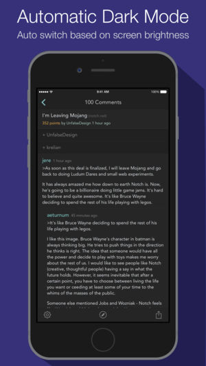 Simple and yet customizable Hacker News Client, with features such as login to reply, voting, collapsible comments, automatic dark mode, customizable fonts and editable tabs, etc. FEATURES • Login your HN account to reply, vote, and view your profile • Collapsible comment thread • Automatic dark mo…