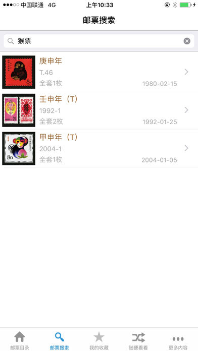 APP Store 收录最全、图片最多邮票目录应用,一共收录了从清代中国发行的第一套邮票到2015年的所有邮票,每套邮票均配有清晰大图,每枚邮票均有清晰图片显示。 收录的邮票目录包括: 纪字头邮票、特字头邮票、文字头邮票、T字头特种邮票,J字头纪念邮票,编年邮票(1992-2015). 收录的清代邮票及解放前邮票目录包括: 1878-1912年清代邮票,1912-1949民国,解放区邮票。包括土地革命战争时期邮票、抗日战争时期邮票、解放战争时期邮票。 另包还收录了包括编号邮票、欠资邮票、航空邮票、军用邮票等发行量不多的小众邮票目录。 关于邮票图片: 邮票图片无疑是最重要的,此版本收录的邮票图片包含每套邮票的整套图片以及每套邮票包含的每格邮票的单独高清图片。 对于专业邮票收藏人士,还提供了邮票的详细说明,包括: 志编号、设计者、全套枚数、整版枚数、类别、题材、摄影者、发行机构、发行量、背胶、印刷机构、齿孔度数、版别及市场估价。 使用者可以在分类及整个目录按照发行日期或市场参考价排序,对于喜欢的邮票,可以加入收藏夹方便随时查看。 使用者也可以根据名称、志编号、搜索邮票,准确且快速。