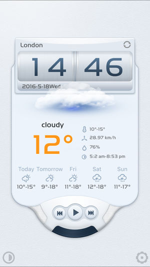 1,气象台权威预报资源,支持全球255个国家和地区多城市实时预报,详尽的天气,温度,湿度,下雨概率,等预报信息。 2,支持未来一周的天气预报。 3,精美的UI设计,便捷的操作体验。 4,支持本地音乐播放,让您同时享受视觉与听觉的完美结合。