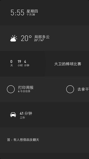 Morning 让您的日常生活比以往任何时候更为简单舒适。追踪时间、了解新闻,以最佳状态开始您的全新一天。本 app 包含 8 款自定义面板,为您带来无限定制可能。让自己保持条理清晰从未如此轻松惬意。 ------------ 可用的面板 • 天气 - 不知道该穿什么?看看今天的天气如何。 • 提醒事项 - 时刻追踪并完成您今天的任务。 • 通勤 - 要知道现在交通状况如何?获得您的通勤所需的预估时间。 • 新闻 - 用最新的新闻报道让自己时刻了解最新动态。 • 日历 - 了解今天有哪些即将发生的事件。 • 股票 - 密切关注您最喜爱的股票涨跌。 • 倒计时 - 现在您再…