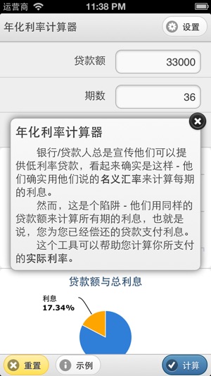 低息分期付款,信用卡分期,感兴趣吧?别傻了,这是个陷阱! 银行/贷款人总是宣传他们可以提供低利率贷款,看起来确实是这样 - 他们确实用他们说的名义汇率来计算每期的利息。 然而,这是个陷阱 - 他们用同样的贷款额来计算所有期的利息,也就是说,您为您已经偿还的贷款支付利息。 这个工具可以帮助您计算您所支付的实际利率,也就是通常说的年化利率。你会发现,您付出的,银行宣称的年利率要高得多! 如果您有任何问题,请联系 stickto@gmail.com,谢谢!