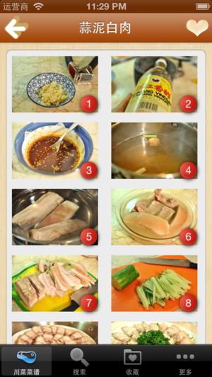 精心挑选川味家常菜及火爆流行菜式,按原料细分家常凉菜、经典小炒、猪肉类、牛肉类、水产类、素菜类、小吃类等七大类,每道菜式均配精美图片,按步骤详细讲解,每步并配有相应图片,保证可以成功操作100%,有图有真相,以及所用的食材的营养分析,是您的川菜烹饪宝典。 无广告,浏览速度快,不耗流量,离线本地浏览,不用上网也可以使用。