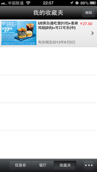 麦当劳全国连锁餐厅优惠券大全!去麦当劳再也不用打印纸质优惠券了!出示手机即可使用,cool!全国不限地区使用,物价上涨,随时随地享受优惠乐趣。 特色功能: 「省钱省纸」无需打印,支持全国手机版优惠券使用 「零流量离线使用」无WIFI网络的地方也可支持离线使用,无需担心流量问题 欢迎加入优惠券QQ群:167626467