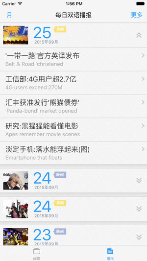 ※ChinaDaily每日双语播报,为你的英语保鲜※ 每日双语播报是由ChinaDaily的资深中外籍编辑们精心撰写,阅读难度适中,在了解最新资讯的同时提高你的英语水平。 亮点: >采用自带英汉词典,哪里不懂点哪里! >支持推送功能,由ChinaDaily美女主编小楠为您精选最劲的双语资讯第一时间推送到您手中! >支持离线缓存,随时随地浏览最新资讯! ChinaDaily首次发布双语类新闻资讯应用——每日双语播报,该应用内所有内容均为ChinaDaily资深编辑原创,拒绝盗版。 欢迎广大用户为我们提供任何意见和建议,我们提供多种途径与您进行交流: 邮箱:newmedia_sup…