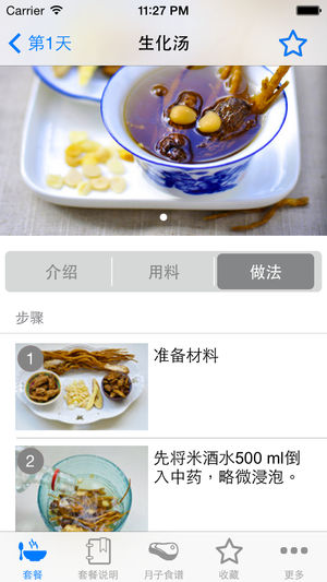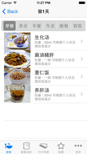 台湾月子餐,很多港台明星都是这样吃的哦,根据台湾传统坐月子方法,对产后28天的每天每顿的食谱一一列出。适合华人体质的坐月子方法,根据产妇产后特殊的生理特点,首创阶段性食补,主要是指导产妇如何在产前及产后正确的饮食及生活作息,让您在产后调理体质的同时也能兼顾身材的恢复,以此利用坐月子的宝贵时机为自己争取更青春、健康、美丽的未来。 使用说明: 第1周 代谢排毒阶段 顺产者本周不用喝养肝汤,剖腹产者喝。 1、不吃猪肝可改为羊肝或鸡肝,猪肝利于排毒;不吃猪心可改为羊心或鸡心;不吃猪腰可改为羊腰。 2、妇宝可用养肝汤、美妍茶、鱼汤等汤水来冲泡,不建议普通开水冲泡。 3、红豆粥和糯米粥剖腹产者要煮软点…