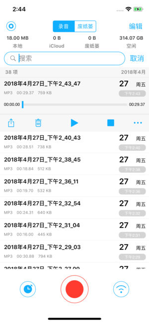 录音从未如此简单! 功能: 自定义格式,播放列表,废纸篓,波形图 & 标记。