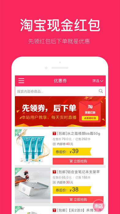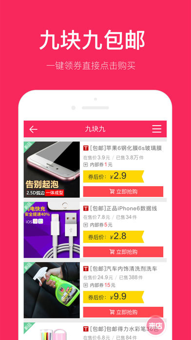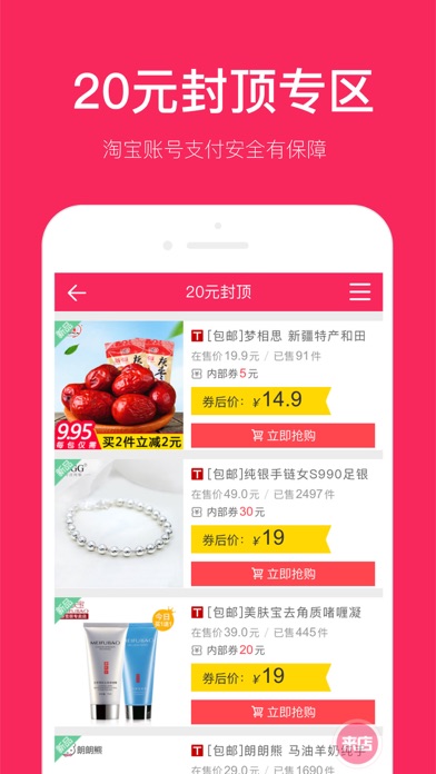 淘宝天猫特价商品精选,千万购物达人的选择。每天为你节省淘宝开支。淘宝官方合作伙伴,安全可信赖。 每天上新,低至1折再包邮,收录商品均经过人工审核。男装、数码、配饰、美食、居家、美妆应有尽有。 每两小时更新一次,折扣优惠潮品新品随时上架。一盒烟或是一道菜的价格,总能找到热卖精品。地铁上或是临睡前的时间,不怕没有心仪宝贝。 特色功能: 9块9包邮、19块9包邮、限时优惠——超低折扣商品任你淘; 男装、数码、配饰、美食、居家、美妆等等分类任你选; 每个月定期超惠活动,淘宝省到家。