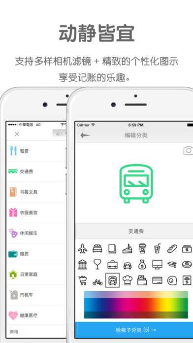 〈记账日记 PRO〉 是一个先进且易用的行动记账本. 前所未有的简单, 记账本就在您的口袋, 随身带着走! 精致介面风格, 支持多帐户与外币汇率管理, 云备份功能, APP密码保护(支持Touch ID解锁). 原来,记账也可以很简单 乾净的版面设计, 没有复杂繁复的操作方式 记账也可以是一个赏心悦目的旅程 【特色】 * 透过通知中心快速记账 * 支持自定日期区间统计功能 支持自订多组不同的日期区间,统计该区间内的收支情况。 (使用情境范例: 即时统计每个月6日到次月5日之间的收入支出。) 【专业级的记账功能】 以趋势图表显示记帐收支状况. 更提供支援帐目搜寻, 帐目闹钟提醒, 多国货币, 多重帐户管理. App密码保护, 以及云备份功能. * 多帐户管理 您可新增与管理多个帐户,记帐帐目简单「清楚明瞭」。 * 多国货币与汇率 您可为每个帐户设定「币別」与「汇率」,外币帐户记帐轻而易举。 * 可设定周期性记帐项目 如果您有每天或固定周期的花费,您可以设定重复性的记帐项目,大大减少每次输入的时间。 * 图形化呈现 透过趋势图与分类圆饼图,清楚观察每周,月,年的花费情况。 * 精致的分类 可以自订主分类与子分类,并提供直觉化的操作介面。 * 支持闹钟提醒 记账时可同时设定「闹钟提醒」,不再忘记未来的缴费或收支项目。 * 相机滤镜 拍照记账支援即时相机滤镜,让记账的生活更多采多姿。 * 支持打卡标示地点 记账时可以顺便打卡,并且可储存打卡记录,方便之后快速重复使用。 * 密码锁 支援密码保护与Touch ID解锁(iOS 8以上),可以设定开启App前的密码锁,您的记账本安全有保障。 * 支持iCloud, Dropbox, GoogleDrive等备份管道 * 支持汇出成CSV/PDF档 支援汇出记帐资料,并可以自行设定汇出时间范围。让您可以自行在Excel中浏览与分析。