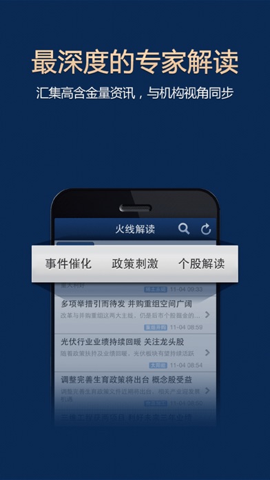 一财点睛是全国首创的资讯决策软件,专家为你筛选“会上涨”的好资讯。由国内知名证券软件益盟操盘手携手第一财经联合推出。凭借第一财经强大金融媒体实力,开创了信息直达式的速递,帮您跳过传统资讯漫长发布流程,一步直达个人投资者,这是深加工资讯首次面向个人。同时,融合益盟操盘手经典的BS点,解决买卖决策问题,帮助投资者把握市场主题投资机会和个股趋势波段操作,实现投资获利。 最深度的专家解读,与机构视角同步 股市中的消息鱼龙混杂,一财点睛并不是简单的资讯堆砌,而是对全市场资讯进行筛选、深加工,并予以深入透彻的原创点评,去伪存真汇集高含金量资讯。再从上市公司业绩、公告新闻、行业政策、重大事件着手,深度解读并分析潜在影响,帮助普通投资者从机构的视角,锁定股价上涨的原始驱动力,发掘资讯背后的“金矿“。 最聚焦的好股筛选,挖掘重点行业及个股 市场上的资讯多如牛毛,筛选起来耗时耗力。一财点睛筛选出利多资讯最聚焦的行业及个股,图形化直观展现热点行业及重点个股,一目了然。同时,结合“中线掘金““周期共振”战法精挑细选出有操作价值的优质个股,与机构选股思路同步。一财消息面,结合益盟核心算法双重选股条件,为投资筛选出最具上涨潜力的个股。 最可靠的资讯来源,一财400余名记者团深入调研 市场中的消息真假难辨,一财点睛依靠第一财经遍布全国的400余名记者团,深入到政策、机构决策层与上市公司高管,对重大事件、焦点人物进行专题采访报道,亲临上市公司调研并做跟踪报道,报道面涵盖各大财经热点,结合益盟操盘手的技术面优势,一财点睛确保财经资讯的真实、快速,并直接聚焦投资机会。 最智能的买卖提示,波段操作持久获利 不是所有的资讯个股都具有操作价值,还要看合适的介入时机,并懂得止盈止损。操盘线BS点买卖信号,智能判断个股趋势变化,大波段绝不错过,适时告诉你止盈止损点,长期大概率波段获利。 “会上涨“的资讯表现: 10月表现:一财点睛提及个股278只,其中上涨个股155只,上涨占比65.20%,平均涨幅14.07% 9月表现:一财点睛提及个股300只,其中上涨个股155只,上涨占比64.05%,平均涨幅14.62% 明星个股:中青宝 报道时间:5月8日08:35 报道内容:网游市场后年将超千亿,布局龙头企业(中青宝、掌趣科技等)。 实战操作:操盘线周线5月10日发出B点买入信号,10月18日发出S点卖出信号 收益结果:期间收益达339.5% 股市,是一个“有经验的人获取资金,有资金的人获取经验”的地方。在股票市场,每个人都是永远的学生,投资的路上,我们比肩同行,不断探索不断进步。 客服热线:4006709090 官方网站yicai.emoney.cn 官方微博:新浪@一财点睛