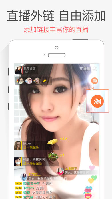 在直播是最火爆的真人视频直播App,让你随时能够用iPhone做视频直播。直播开始时,你的粉丝立刻会收到开播通知,一秒钟就能聚集大批观众。『在直播』集成了一系列社交功能,能实时看到观众的人来人往、疯狂点赞、弹幕。你还能收到来自观众的“金条”赞助! 其他功能: 【全球视频加速】视频服务器全球分布,保证视频流畅 【自动美颜】运用人脸识别,全自动实现美颜功能! 【赞助直播台】可以随时用钱投票,购置虚拟“金条”赞助直播台 【排行榜】根据人气每日更新直播台排名 开一个自己的直播台!