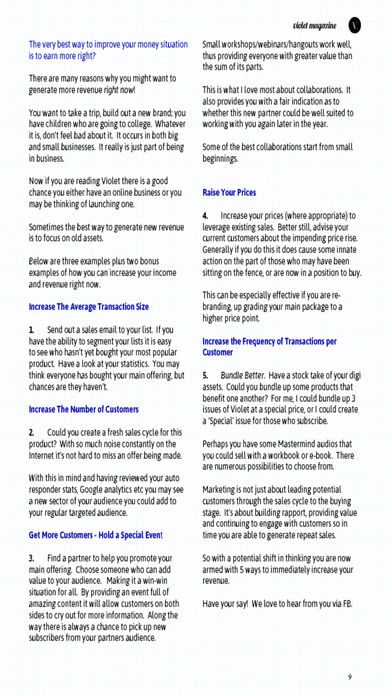 Welcome to Violet! Enjoy a FREE Trial! Violet Magazine is for female entrepreneurs and women in business. Your go-to business & lifestyle entrepreneurial magazine, designed for women to empower and inspire one another in both business and life. Be part of a community like no other online. VIOLET is a valuable learning resource revealing what it takes to become a success in business, entrepreneurship and life. The ultimate resource for entrepreneurs at any stage of life. - WHAT IF you could get a deep dive look into the life of entrepreneurship? - WHAT IF you could uncover all that it takes for a start up to succeed at any stage in your life? - WHAT IF you could uncover .. unlimited insights from the worlds the secrets of the greatest business men and women?…. in the world? - WHAT IF you had interviews and audios providing inspiration and unlimited insights into business and life success? - WHAT IF you get practical information to move ideas into action, to show you actionable, strategic steps into realising the epic lifestyle you deserve and desire? - WHAT IF you want more than your 9-5 provides you? VIOLET is optimised specifically for iOS, we have exclusive audio and video interviews content WITHIN the magazine, providing you real insights into achieving success. We want to show you the steps to building a successful business and lifestyles enjoyed by entrepreneurs around the world. In every issue, we will cover a range of topics: * ENTREPRENEURSHIP/BUSINESS - learn what it takes to bring your A game to town. * SUCCESS STORIES - Exclusive interviews with those outstanding in their fields, plus action plans and road-maps so you can learn from each interview. * FINANCE/WEALTH & ALL THINGS MONEY - everything you ever needed to know about increasing your income and building lifelong wealth. * STARTUPS - breaking down the overwhelm, what it takes to build and grow a successful startup with the latest proven trends and technology. * FREEDOM/LIFESTYLE/BALANCE - practical information to help you improve all aspects of your life. * PRODUCTIVITY & FOCUS - what it takes to be hyper efficient and motivated. Subscription bi-monthly options: - 1 Year subscription AUD $17.94 - 6 Month Subscription AUD $ 8.97 - A Single Subscription AUD $ 4.49 (non-subscription) SUBSCRIBERS' AUTOMATIC-RENEWAL FEATURE: Your subscription automatically renews unless auto-renew is turned off at least 24-hours before the end of the current period. Your iTunes account will be automatically charged at the same price for renewal 24-hours prior to the end of the current period (another year for annual subscribers, another month for monthly subscribers) unless you change your subscription preferences in your account settings. You can manage your subscriptions through your Account settings after purchase. No cancellation of the current subscription is allowed during active subscription period. Please go to http://violet-magazine.com/privacy-policy for more information.