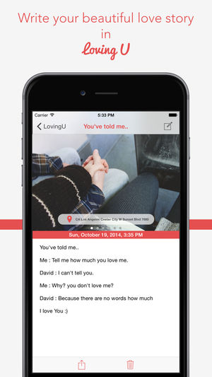 ●App Store上推出“Apps for Couples” 你是恋人吗? 你有一个亲人吗? 今天约会怎么样? 在“Loving U”中写一个亲爱的故事 基本特征 -------------------- 日记 - 周年纪念日 - 写下你美丽的爱情故事 记住我们的周年纪念 简单美丽的日历 -一对- 夫妇迷你档案 快速拨号(电话,留言,电子邮件) 我们遇到的日子(天或年,月,日) 天数显示图标徽章 -一般- 密码保护 使用Dropbox备份和还原 日期计算器 爱情报价 分享(Facebook,Twitter,留言,电子邮件)