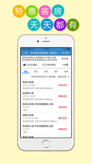 提供全国超过20万家酒店专业在线预订服务,汇集7天.如家.汉庭.锦江之星.速8.莫泰.格林豪泰.布丁.维也纳等品牌的经济快捷酒店会员价预订,为用户提供安全、舒适、温馨的酒店预订服务(预订成功后短信及时通知,24小时客服电话回访确认)。 特色功能: 1、享受会员特价,无需注册,方便快捷,真正实现1分钟内完成酒店预订。 2、酒店全是连锁品牌酒店,绝对安全、舒适、服务一流。 3、7x24小时电话预订热线,直接沟通,让你放心预订。 4、连锁酒店,汇集7天、汉庭、如家、锦江之星、格林豪泰、速8、莫泰等各大品牌酒店。 5、附近酒店,快速的一键查询定位您身边的热门酒店。 6、酒店地图,清晰…
