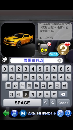 ✪你认识多少汽车车型? 挑战一下!✪ ★★★你熟悉世界上所有汽车的车型吗? ★★★ ★★★ 看看你在《车标达人2 - 猜车型》游戏中能认出多少汽车品牌的标志? ★★★ ★★★★★★★来和我们一起玩吧★★★★★★★ 车标达人2 - 猜车型 《车标达人2 - 猜车型》游戏可以测试大家对不同汽车车型的熟悉程度. 世界上有很多种汽车品牌和车型!但究竟有多少是你认识的呢?挑战一下吧! 近200个车型 本游戏收集了近200个车型,供您辨认。 向导 我们强烈建议你去先使用向导功能。我们准备了详细的指南,告诉你如何使用这个游戏中的所有道具和功能. 游…