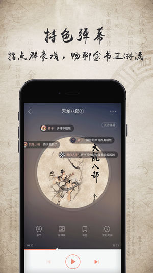 【简介】 听武侠・最金庸。金庸官方正版授权,金庸武侠小说全集汉语有声书全球震撼上市!以有声的方式百分百还原原著,不一样的听读体验,更有广播剧版、粤语等方言版不断连载更新;会员订阅,套装优惠,免费直播,弹幕评论等功能不断丰富。刀光剑影的武侠盛宴,侠骨柔情的有声江湖,尽在“金庸听书”! 【各路大侠的声音】 ‣ 北京大学教授严家炎:“金庸武侠小说当中包涵着迷人的文化气息、丰厚的历史知识和深刻的民族精神,而且用平等开放的态度处理各民族间的关系,金庸是第一人。” ‣ 中国文联主席孙家正:“金庸把正直、善良、侠肝义胆的中国文化精神传遍了全世界。” ‣ 香港小说学会副会长、香港中文进修学会会长杨兴安:“金…