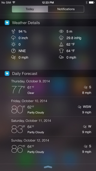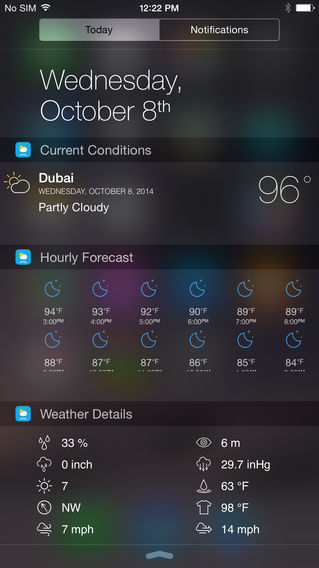 The best and most complete Weather Widget available! — CONTAINS 4 ADVANCED WEATHER WIDGETS! — Weather Widget provides you a quick and detailed weather forecasts for all cities worldwide, right in your Notification Center, just one swipe away from wherever you are in your device! Features: - This app contains four (4) beautifully crafted weather widgets and therefore suits you when you want a quick glance of the weather, but also when you need all the detailed weather info and forecasts. - World Wide weather forecasts. Weather Widget comes with an app in which you can manage the location being displayed in the widgets, temperature unit and other advanced settings. - Detailed Weather Information about your location. This information contains for example: humidity, pressure, precipitation, visibility, dew point, UV, detailed wind info and wind chill. - Detailed hourly forecast. Know the exact temperature and forecast weather details of the next 12 hours! - 5 day weather forecast. Weather Widgets also contains a widget presenting you the forecasted predictions of the next 5 days, accompanied with temperature details, weather conditions and wind info. - Switch between Fahrenheit & Celsius, Miles & Kilometres and all other units. Install Weather Widget now and from now on you only need to swipe down to open the Notification Center to have all the weather infer on your fingertips! Easy as that!