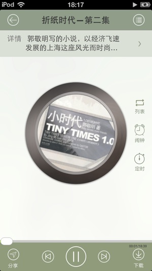 * 海量图书音频节目,等你来听! 悬疑,理财,爱情,官场、侦探、恐怖.....不论是热门书、新 书还是连载书,各类书籍,每天更新,全部免费,应有尽有! * 释放双眼,静静聆听! 戴上耳机,享受丰富内容,感受完美音质。不用眼睛看就可以收获到的财富。释放疲惫的双眼! * 简单页面设计,方便收听,容易操作! 支持断点续听、在线听、下载听,WIFI环境下一键下载全辑!订阅历史功能,不用寻找,一键收听所有喜欢的节目! * 叫我起床,伴我入睡的小伙伴! 特色功能“叫我起床,伴我入睡”,不用再担心上班会迟到,不用再害怕一个人睡觉! ------------------------…