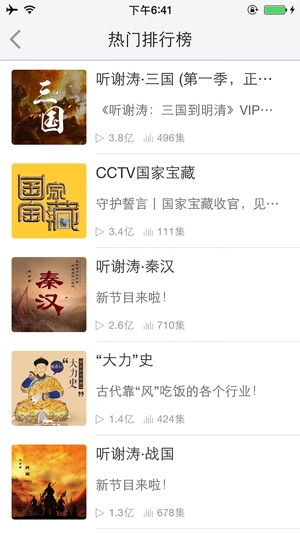 - 历史性、艺术性、趣味性与教育性相结合,引人入胜! - 聆听不同文人的声音!感悟丰富文化的底蕴!提升自身文学的素养! - 免费奉上易中天的独到见解;高晓松的犀利观点;马云的财富人生...... - 一键点击即可下载收藏最喜欢的有声小说、评书、历史人文、脱口秀...... - 支持断点续听,自动记忆上次播放的位置,好内容,不得不听完! ----------------------------- 多久没有坐在课堂上?多久没有听着知识动脑筋思考?多久没有在文学的海洋里寻找自己想要的信息?来《名人历史课》吧,在这里只需要安静的做一名收听者,用心去感受,在历史的海洋里遨游!在艺术的熏陶中沉…