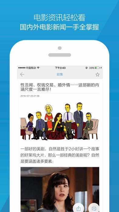 中国首个电影资讯类移动客户端应用,1985年创刊的《环球银幕》杂志手机版,拥有新闻、评论、新片、视频、人物、产业、专题、剧集等重要版块,全方位覆盖国内外电影动态和业界进展,同时提供极具特色的手机版杂志阅读体验,充分满足影迷的多种资讯需求,可谓观影达人必备的手机应用。 功能特性: 1. 业态实时更新的电影资讯平台 - 实时追踪国内外电影动态和业界进展,新鲜电影资讯一手掌控 - 以专业和文化的角度解读电影和产业,只做有特色的分析和评论 2. 热辣公心的电影推介平台 - 为观众和片方搭建信息沟通的桥梁,提供第一手电影物料和资讯 - 紧贴国内外院线热点,做好产业的护航者和观众的领航员 3. 表现形式多样的电影杂志平台 - 声光画一体的多种表现形式,带你进入全新的阅读体验 - 全面对接《环球银幕》期刊,为读者提供便捷的预览 《环球银幕》创刊于1984年,隶属于中国电影出版社,是中国第一本以介绍国外电影、影星、娱乐资讯为主的杂志,发行覆盖全国100多个大中城市,拥有数十万忠实读者。