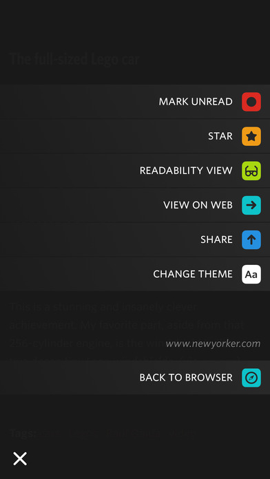 Rediscover the joy of reading your favorite writers with Unread, an RSS reader for iPhone. TRY IT FOR FREE Unread is a free download. You can read up to 50 articles to begin with, and 3 per day once those are used up. For unlimited reading, and to unlock 7 additional themes, there is a one-time in-app purchase. - - - - - - - - - - - - - “Unread is refreshingly simple and elegant. If you subscribe to RSS feeds and read them on your iPhone, take some time and use Unread for a while — I think you’ll be glad you did.” — Shawn Blanc “Unread provides a fantastic mix of elegant typography, intuitive gesture-based, one-handed navigation, iOS 7 features, and modern sharing tools that, in my opinion, make it the best RSS reader for iPhone today.” — Federico Viticci - - - - - - - - - - - - - FULL-SCREEN READING Focus on the act of reading with Unread’s full-screen article view. Articles are typeset in beautiful fonts from Hoefler & Co. Let nothing stand between you and the words of your favorite writers. READABILITY VIEW For truncated RSS feeds, or linked list items, quickly load the full text of articles into Unread's beautiful readability view. DESIGNED FOR COMFORT Move anywhere in the app with a sweep of your thumb, without having to reposition your hand. Unread’s stacked navigation was built from scratch to be the most comfortable interface you’ve ever used. Flick left-to-right to go back from anywhere on the screen. Tug any screen right-to-left to show options for that screen. MULTIPLE THEMES Like to read in bed? Don’t wake your partner with glaring white light. Unread has multiple themes designed to make it easy to read under any lighting conditions. (Requires a single in-app purchase) SHARE THE GOOD STUFF Take advantage of the power of iOS 8 extensions to send text, images, and links to other apps on your phone. - - - - - - - - - - - - - SUPPORTED SERVICES Unread requires an account with one of the following RSS syncing services: - Feed Wrangler - Feedbin - Feedly - Fever - NewsBlur - - - - - - - - - - - - - SO MUCH TO LOVE ABOUT UNREAD • BACKGROUND REFRESH • Unread keeps your subscriptions up to date with power-efficient background updating. Articles and images are saved to your device for convenient offline reading. • SHARING • Use the iOS 8 share extensions to send articles to Instapaper, Pocket, Readability, Pinboard, or your Reading List. Share articles and images via Facebook or Twitter. Send a snippet of highlighted text to Omnifocus or Things for a quick reminder. And so much more. • QUICK ACCESS • Double tap an article summary to instantly toggle read/unread status. Press and hold to show a menu of options. This is great for quick sharing or for jumping straight to the web to view the original article. • LINKED-LISTS • If an article is a linked-list article, like those written by John Gruber at Daring Fireball, the article summary shows the domain name of the linked item’s site. • BIG THUMBNAILS • Turn on the optional inline thumbnails to see big previews of article images while you scroll. • FOOTNOTE POPOVERS • Articles with properly-formatted footnotes will show convenient popovers when you need to read a footnote. • 1PASSWORD INTEGRATION • Get your accounts set up quickly. • ACCESSIBILITY • Unread has 100-percent VoiceOver coverage. Every screen and every feature is available to users with vision impairments. Actions on articles can be quickly triggered using actions option on the accessibility rotor. The Font sizes are adjustable, too, from Tiny to EPIC and many points between.