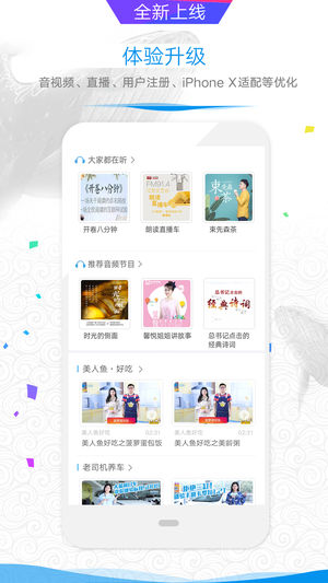 *全国第一款打通微信公众平台的融媒体app:线上与百名大咖零距离交流,更可参与“微啵live互动”、“热门活动”,同千万粉丝共夺大奖! *汇聚江苏台微信矩阵百万粉丝,超100位明星大咖直播间专访,弹幕互动、微视频和语音上传等行业领先的趣味化功能让你与主播“面对面”对话。 *官方收录电台卫星信号,可选听逾60档国家及各省市广播直播节目,随意切换无卡顿。 *《大蓝鲸》是江苏人民广播电台独家定制的多媒体互动平台。发布信息秉承媒体公信力,对于发布虚假、色情、反动等不法信息分子采取一票否决制度。 【互动属性强 功能多样化】 1)视频互动直播间 视频网络直播互动类别丰富,娱乐名流独家访谈、资深专家学术探讨…