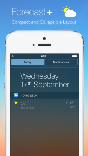 Forget about the boring weather summary in your notification center! Meet Forecast+, an elegant weather and forecast widget for iOS 8. It shows the current weather and 5-day forecast with a minimal design. FEATURES ● Support auto detect location / manually search for a location ● Show current tem…