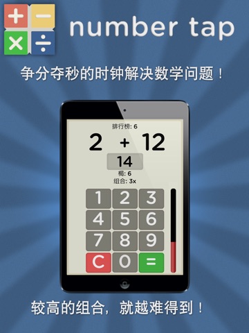 4个有趣的游戏模式 快速和令人上瘾的 3个难度级别 14排行榜 21成就 优化iPhone5和视网膜器件。 争分夺秒地完成数学题,在这个快节奏,爱不释手的游戏。 适合儿童,以有趣的方式,来提高他们的数学技能。 在网上的排行榜竞争和追逐一切的成就。用 简单和快速的游戏,以及一个伟大的工具来训练你的大脑。