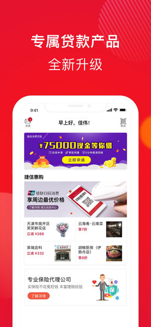 应用介绍: 捷信金融,贷款超容易,放款超迅速,更新增保险等服务! 捷信金融--是一款急速贷款借钱分期神器,凭身份证和银行卡即可在线申请及审批,5分钟极速到账。 新客户可享受超高贷款额度,50000元超贷贷款额度,贷款金额、贷款期数可灵活选择。 【平台介绍】 捷信消费金融有限公司是首批四家银监会消费金融持牌公司之一,为您提供银行级安全、专业、便捷的小额贷款、大额贷款、现金贷,分期贷款,分期商城,保险等服务;手机借钱贷款就找捷信金融,轻松帮你解决【贷款】【借钱】【借款】【商品分期】等所有难题; 【产品优势】 1、门槛低:一张身份证即可办理; 2、速度快:线上审批,5分钟放款; 3、额度高:最高50…