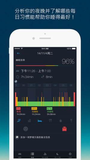 优质睡眠应用与Apple Health这一可以高度满足个性化需求的平台完全整合,使健康健身类应用可以顺利地在这一平台上共同运作,并给你提供你健康和健身数据的访问权限。这意味着你可以将你的睡眠数据上传至Apple Health,使用Apple Health数据可以让你更方便地进行注册。 用你的iPhone来深入了解你的睡眠,追踪月相吧: App的功能和福利: - 只需轻触一下按键便可追踪你的睡眠时长,周期及效率。 - 让你在入睡或清晨醒来时更好地了解你的浅睡眠,深睡眠及在床上醒着所花去的时间。 - 输入如咖啡因的摄入量,健身训练,酒精的摄入量及压力程度等信息来观察这些因素对你睡眠质量所产…