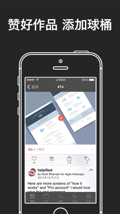 嘿 dribbblers!您可以用这个最新最快功能齐全的手机客户端浏览 dribbble 作品。这个程序使用了最新的 iOS 8 技术。支援 iPad, iPhone5,5S,6 和 iPhone 6。 您可以 ∙ 赞好作品 (shot) ∙ 发表评论 ∙ 关注其他用户 ∙ 添加作品到您的球桶 (bucket) ∙ 放大/下载图像或附件 ∙ 查看大档案 GIF 动画 ∙ 阅读您的订阅 ∙ 使用关键字搜索 ∙ 查看篮板球 ∙ 查看作品的标签或球桶 这是 dribbble 第三方客户端应用程序。
