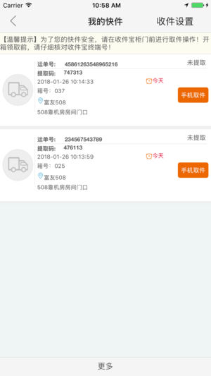 富友收件宝是一款结合富友快递柜(富友社区智能便民服务终端)的服务应用,为收件宝的社区用户提供指尖上更安全、更高效、更便捷的智慧生活服务。 【主要功能】 一、包裹取件: ① 包裹动态 随时知晓 更安全 ② 手机取件 一键开箱 更便捷 二、生活服务: ① 品牌商家 低价闪购 更优惠 ② 本地生活 优惠领取 更超值 ③ 社区福利 免费秒杀 更精彩 ④ 便民服务 账单缴费 更快捷 三、新增“优惠券”频道,为用户提供线上线下商户优惠信息,提升生活品质的便利中心。 多样化的服务,让我们一起共享生活的点点滴滴。 富友收件宝 您的生活 服务助手。 收件宝内涉及免费领取商品、抽奖等活动由上海富友电子商务有…
