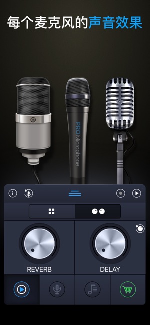 专业麦克风-用于排练和练习唱歌,会议,学习,音乐会或聚会,专业录音是你不可获缺的伴侣,开启魅力声音旅程 ,让你的声音听起来更有磁性。 玩法介绍:你可以选择麦克风类型:录音室话筒,电容话筒和动态类型。他们每个人都有自己的声音效果。此外,您还可以使用类似延迟或混响附加效果。选择最喜欢的麦克风,说话,唱歌,并记录下来,您可以使用均衡器调节声音特性或FX。