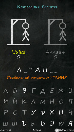 :: игра полностью русифицирована :: Ждешь электричку, автобус? Не знаешь, чем заняться, как убить время? У нас есть то, что тебе нужно! Новая игра ВИСЕЛИЦА! Развлекайся, играя в традиционную Виселицу теперь и на своем iPhone, iPod Touch и iPad! Играй сейчас! Один или онлайн вместе с друзьями! С…