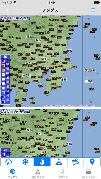 该应用可以同时显示日本气象厅公布的天气预报,各种警报以及注意信息和国土交通省的河川防灾信息系统显示的防灾信息。 使用该应用可以快速确认下列信息 1、天气预报。 2、警报和各种注意信息。 3、自动气象数据采集系统的各种图表数据。 4、雨天雷达和河川防灾信息。 功能特征: 1,自动记忆最后阅览的画面。 2,在一个画面中同时用图像显示3天的天气预报,比相应PC网站便利。 3,所有内容为日语,并根据日本当地时间进行显示。 注意: 1,必须依赖网络环境取得所有内容。 2,这个应用只是一个显示上述内容的工具,对所有的内容的正确与否不承担任何责任,也不拥有任何著作权。 3,此应用根据日本当地的日期时间取得相应的信息,如果日期或时间的设置不对,就会出现不能显示相应内容的情况。