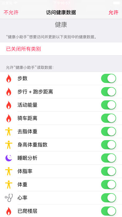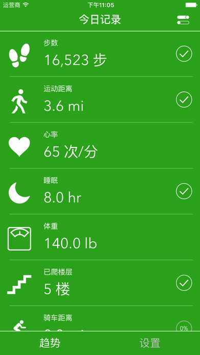 健康数据小助手完美简洁地记录和展示你的健康和健身数据,专门为苹果健康app设计和开发。 - 提供更多方式方便快捷地查看和管理你的苹果健康app中的相关健康数据 - 按百分比显示你的健身成果,有助于你尽快完成预设目标 - 所有数据同时可以在iPhone和Apple Watch上完美显示 - 数据可以分别按日,周和月显示 - 可以修改数据单位(公里/英里) - 按你的喜好替换面板主题颜色 - 显示运动步数和距离的数据(iphone5s/6/6 plus上该数据自动显示) - 显示已爬楼层数据(iphone6/6 plus上该数据自动显示) - 显示心率数据(apple watch可以自动显示) - 显示睡眠状况,消耗的卡路里,Nikefuel 指数,等 - 显示体重,BMI指数,体脂比,去脂体重 苹果健康集成: 该应用仅从苹果健康应用中读取和显示相关健康数据,我们不会将数据上传服务器和任何第三方,也不会用于任何商业目的。 - 步数 -步行+跑步距离 - 心率 - 睡眠状况 - 体重 - 已爬楼层 - 骑车距离 - 活动时消耗的卡路里 - 身高体重指数 - 体脂比 - 去脂体重 - NIKEfuel 鸣谢: - Scale Created by Rohan Gupta from the Noun Projects - Checkmark Created by Arthur Shlain from the Noun Projects - Fire Created by SuperAtic LABS from the Noun Projects - Fire Created by Eugen Belyakoff from the Noun Projects - Moon Created by P.J. Odor from the Noun Projects