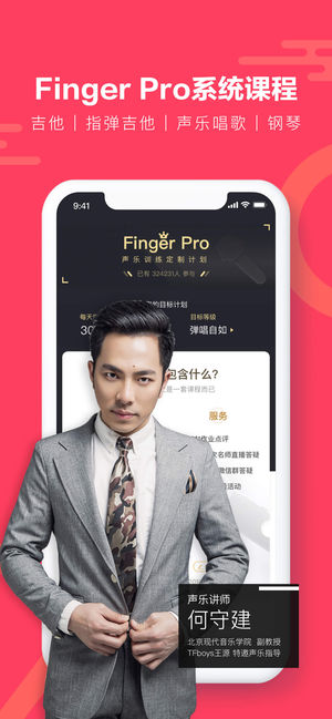 Finger获绿城1亿元融资,线上音乐教育NO.1正式宣布拓展线下门店,首家布点城市会是……?敬请期待! 「Finger」- 你的口袋音乐教师,跟随我们拨动手指,人人都会玩乐器~ 一门乐器,到底有多难? - 生活忙碌、学业繁忙,没有固定时间找老师练习 - 找不到靠谱的老师,琴行授课又太贵 网上教学视频太多,无法形成系统化的学习目标,坚持不下去 怎么办?Finger帮您解决! 【Finger Pro 系统定制课程】 吉他 | 指弹吉他 | 声乐(唱歌)| 钢琴 - 3分钟测试你的音乐水平,划定分级,根据您期望值提供针对性的课程训练 在线学无忧!专业老师把控教学内容,满足各阶段练习需求…