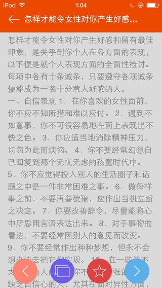 《泡妞锦囊》 我们为什么要系统的学习如何追女生? 女生是个复杂的情感动物,即使是恋爱中的女生,因此掌握女生的恋爱心理是很重要的,它会帮助我们快速获得爱情,也能让爱情保鲜。理论指导实践,成功终将不远! 此应用能做什么?它教你如何甜言蜜语打动女生,教你如何写情书... 还有此应用也会告诉你:其实很多漂亮的女生压根就没人追!呵呵,聪明的人已经下载了,励志终身单身的人还在犹豫!