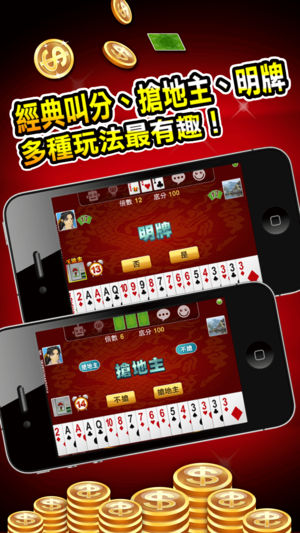 【玩家评鑑五颗星,台湾线上斗地主No.1游戏品牌】 3,200万玩家,3秒上桌、随上随打!正宗中国大老二,免注册立刻玩! 。免费游戏:立刻下载可得1500地主币(限新注册) 。赠币超多:连续登入玩斗地主游戏,每日领好康 。经典叫地主、抢地主、明牌,多种玩法最有趣 =iPhone 斗地主 改版内容 = 。全新聚宝盆:玩越多地主币越高! 。至尊VIP:VIP等级越高优惠越多! 。独家娱乐城:21点、骰宝、拉霸,1个APP,4种享受 。幸运转金乐,地主币最高送十倍! =iPhone 三人大老二 游戏特色 = 。正宗斗地主游戏(又称斗地主、Landlord) 。13亿人的最爱,三人大老二扑克游…