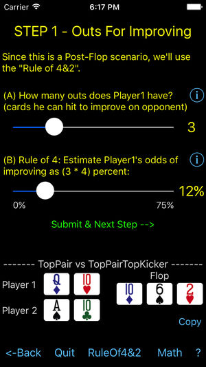 Don't just memorize the odds, *understand* them ... This app teaches you a general method for estimating the odds for just about any Texas Hold'em scenario in your head in real time. *** Pay once and enjoy forever *** No in-app purchases/fees. Continual improvement for many years. ***** Note: (1)…