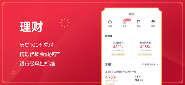 度小满金融(原百度钱包)旨在成为领先的金融服务平台。度小满金融(原百度钱包)提供面向大众的方便、快捷、安心的互联网消费信贷服务;提供优质的理财服务,包括活期理财、定期理财、银行理财等多元化理财产品。度小满金融(原百度钱包)帮用户安心实现财富增长,同时融合多种便捷生活服务。 特色功能如下: 【有钱花】 “有钱花” 利用人工智能和大数据风控技术,是面向大众的互联网信贷贷款服务平台,为用户提供方便、快捷、安心的借款服务。“有钱花”仅需您填写身份信息,提交材料后最快30秒即可获得借款额度,最高额度200,000元(以最终审批结果为准),日息0.02%起,借钱就找“有钱花”,随时借款。…