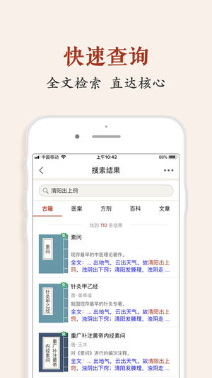 ▶ 中医古籍——中医人的掌上古籍图书馆 中医智库旗下一款集成中国历代医学典籍的 中医类App。收录历代医家海量著作,包含 中医入门、养生保健、本草方书、临证各科等 详细分类,是中医医生、中医爱好者学习 和研究必备工具! ▶ 涵盖书籍 【中医经典600种】涵盖内经、伤寒、本草等 【养生食疗保健60种】涵盖延寿、食疗等 【经络穴位推拿50种】涵盖经络汇编等 整体来看,经典著作原本及解读、养生保健书、 针灸中医经典、临证各科、珍藏孤本、 争鸣流派等各类专题古籍总计多达2千余种。 支持书名、作者、全文搜索, 糖尿病、体质养生、张仲景、附子等 各类内容一搜即得。 ▶ 产品特色 【总量】全面收录中医…