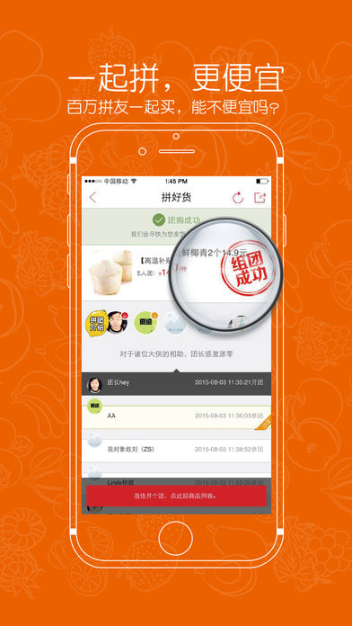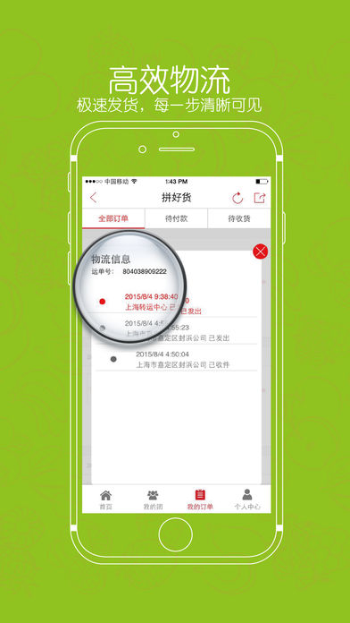 拼好货是一种全新的水果网购方式,是真正意义的团购。用户通过发起和朋友、家人、邻居拼团购,以更低的价格,拼团买到优质水果。 -一起拼,更便宜:拼好货的百万拼友一起拼,好货也便宜,水果天天特卖!所有水果包邮到家! -产地直购:拼好货深入水果产地,进入市场第一线,天天果园直採,优选最靠谱的水果好货,让您在家就能轻易品尝从树上到舌尖的新鲜。新鲜水果,开启您的每日鲜生活。 -坏果包赔:拼好货拼团商城力求每一份水果都是美果优鲜。如有坏果,立即包赔,完善的售后服务,力求第一时间让您满意。 -流程简单:拼好货的拼团简单有趣,快易便利。24小时内不成团就退款,天天优惠券,红包发不停。 -高效物流:拼好货将新鲜水果,配送到家。拼好货商城有自己的电商快递系统和高效物流体系,极速发货,每一步清晰可见。配送员将您拼团的鲜果,从配送中心配送到位,让您在家就能品尝美味鲜果。 拼好货从原产地和一级市场挑选优质水果,通过配送快递直达您的手上。拼好货希望每一步都可以透明化:水果从产地配送到家,每一步可以看到。拼好货商城同时支持微信支付、支付宝支付、账户余额支付等在线支付方式,快易便利。 拼好貨拼团商城现在覆盖了全国7大区,关注weixin微信公众号:拼好货商城、拼好货华北商城、拼好货华南商城、拼好货华中商城、拼好货东北商城、拼好货西南商城、拼好货西北商城。 拼好货:一起拼,好货也便宜。如果你也爱拼团,爱鲜果,就请下载打开拼好货,随时开启您的每日鲜生活!