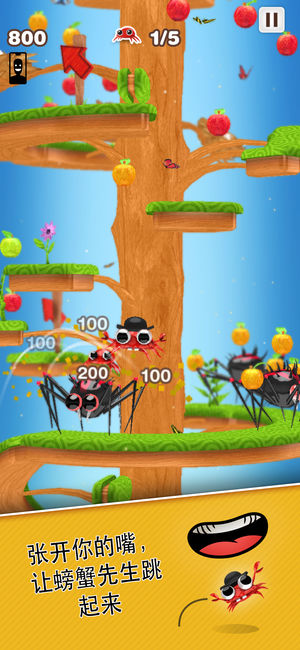 与螃蟹先生一起加入它的伟大历险! 《螃蟹先生》是一款超快速加旋转的街机动作游戏。玩家控制螃蟹先生,一路跳跃到顶端,并尽可能解救所有的螃蟹宝宝。 你只需点按屏幕跳跃,并攀爬到旋转之塔的顶端。不过要当心,一路上会有许多敌人将使用一切方式阻止你。 时间即是一切 在《螃蟹先生》中,你需要快速思考,把握时间,在每一关卡获得三颗星。 近 100 个极富挑战性的关卡 你将发现不同的关卡,例如“海滩派对”、“冰山攀登者”和“轰轰寺庙”。你能征服这些关卡吗? 遇到、击败或躲避敌人 在每一关卡遇到不同敌人。向河豚 Bob、蝙蝠 Bernard 和蝎子王打声招呼吧... 如果你胆子够大的话。 你必须…