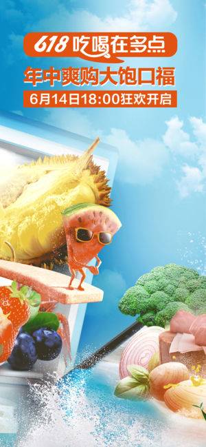 618吃喝在多点,秒杀、1元购、爆品直降、满199减100...超多活动等你来,年中爽购大饱口福!6月14日18:00狂欢开启! 多点App,50000000+用户的选择! 【好货送到家,不用自己扛】 没时间去超市?米面粮油拎不动?天热不想出门?打开多点app,无论在家、在办公室还是在上班路上,随时随地下单,万款生鲜日用配送到家! 【购物新方式,结账不排队】 逛超市用多点智能购(自由购、自助收银机、智能购物车)体验购物新方式,最快3秒买单不排队。 【海量活动,为你省更多】 积分抵现、优惠券发放、满减、秒杀、单品特价……更有会员日、免邮日、周末大放价、月度狂欢等定期约惠不…