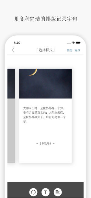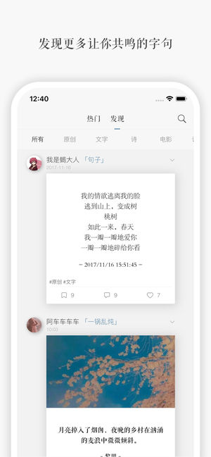 【App Store 官方“一元精选”、“发现与分享”专题推荐】 「一言」,记录和发现让你共鸣的字句。 「一言」是一个有温度的文字轻社区,也是一个精致的文字记录和排版工具,它可以是你的: · 字句收藏本:一段文字、一篇歌词、几句对白,总有触动到你的字句,「一言」为你铭记这一瞬。 · 创作本:写诗、创作长文,或许能引起他人共鸣,成为你的读者。 · 日记本:用精美的图文记录生活,丰盈自我。你的图文永不丢失。 · 闲时读物:或许你更喜欢作为读者,邂逅「一言」首页每日推荐的内容。 · 排版工具:极简美学的设计,重塑文字视觉美感。 · ...... 一切关于文字,一切关于你的思考和内心…