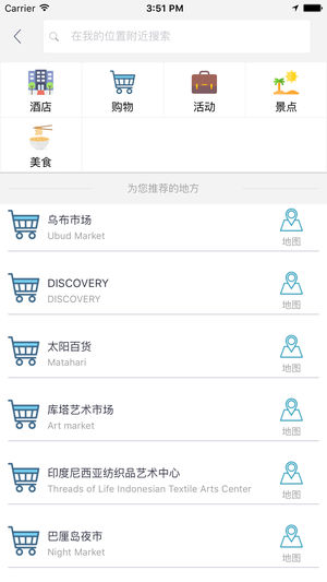 巴厘岛中文离线地图是一款支持中文地名和酒店标注的地图。所有数据全部打包在应用中,在离线环境在完全可用,是去巴厘岛旅游的必备工具。 主要特征包括: 1 地图数据完全离线 2 酒店全部中文标注,并提供酒店详细描述 3 部分重要地点中文标注 4 支持酒店查询,快速在地图上定位 5 支持景点、购物、美食、活动等信息在地图上的展示,并提供列表视图快速浏览 6 支持附近酒店、景点、购物、美食、活动的查询 7 支持离线路径规划