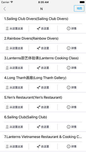 芽庄中文离线地图是一款支持中文地名和酒店标注的地图。所有数据全部打包在应用中,在离线环境在完全可用,是去芽庄旅游的必备工具。 主要特征包括: 1 地图数据完全离线 2 酒店全部中文标注,并提供酒店详细描述 3 部分重要地点中文标注 4 支持酒店查询,快速在地图上定位 5 支持景点、购物、美食、活动等信息在地图上的展示,并提供列表视图快速浏览 6 支持附近酒店、景点、购物、美食、活动的查询 7 支持离线路径规划