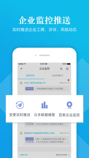 启信宝是一款快速精准的企业信息查询工具,为各行业人士提供丰富详尽的企业信息检索服务,包含全面、客观、权威的工商、投资、司法、资质、许可、处罚等企业信息,是商务人士必备的企业征信利器。 企业信息查询 轻松告别各大网站,工商、变更、知识产权一键知晓 信誉信用查询 P2P黑名单企业实时更新,失信企业从此无处遁形 帮助商务对接 把握竞业发展动态,快速查询上下游合作企业信息 高效商业监控 公开企业资信状态,使对外投资和向外借贷更透明 跨界延伸服务 提供目标查询企业全面的资质、招聘、司法信息 小宝非常乐意倾听您的声音,有任何意见或想法一定记得联系我们:kefu@qixin.com